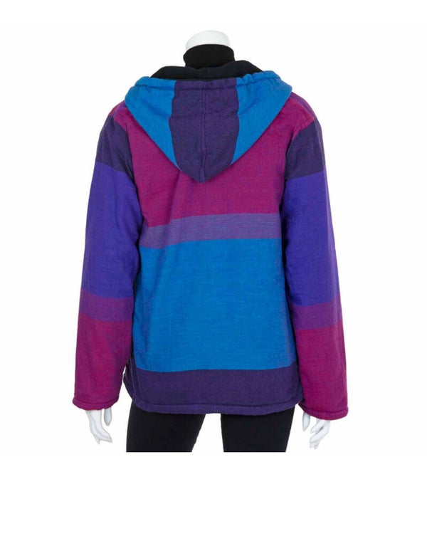 ๐ This gorgeous jacket is both practical and eye-catching! It features two handy front pockets, a full zip fastening, and a drawstring hood for extra snugness. Whether you’re heading to a gig, a night market, or just living your brightest life, this jacket brings the colour and comfort.